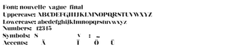 Nouvelle Vague is een opvallend serif lettertype dat vintage elegantie combineert met een hedendaagse uitstraling. Het font kenmerkt zich door hoge contrasten en scherp gesneden serif-stijlen, wat een dramatische silhouet creëert dat doet denken aan de glamour van klassieke cinema. De fontfamilie biedt een scala aan stijlen, variërend van solide en vet tot delicate outline- en textuurversies, waardoor het veelzijdige opties biedt voor ontwerpers die op zoek zijn naar dynamische koppen of verfijnde branding.